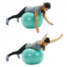 Shoulder T’s: Similar to above, lay prone over an exercise ball with your elbow straight and your arms out to the side (T’s). Slowly raise your arms upward and return to original position. Your thumbs should be pointed upwards the entire time, or you may also add light weights.